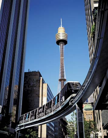 – premávajúci nad úrovňou ulíc. Ten vás prevezie ponad Čínsku alebo Španielskú štvrť, hlavnú nákupnú ulicu George Street, okolo historickej Queen Victoria Building a priamo ponad Darling Harbour – centrum zábavy a romantických večerov na prístavnej promenáde. Kvôli reklamám na oknách sa fotografovať sa z neho nedá – no môžete sa rozhodnúť, či za jeden žetón vystúpite na mieste, ktoré vás zaujme ako cieľ cesty, alebo sa po celom okruhu vrátite na stanicu, kde ste nastúpili a pokračovať budete pešo. Každá zastávka stojí za to.